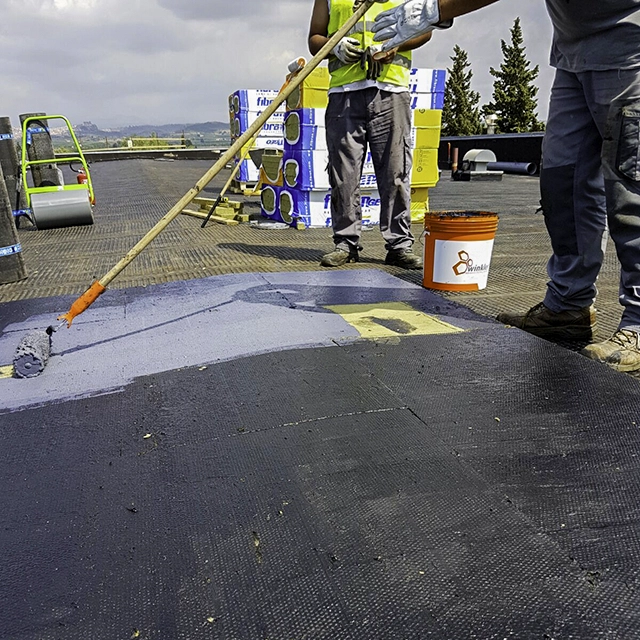 Winglue Universal, water-based adhesive for bituminous membranes and insulating panels, based on bitumen and synthetic polymers.
