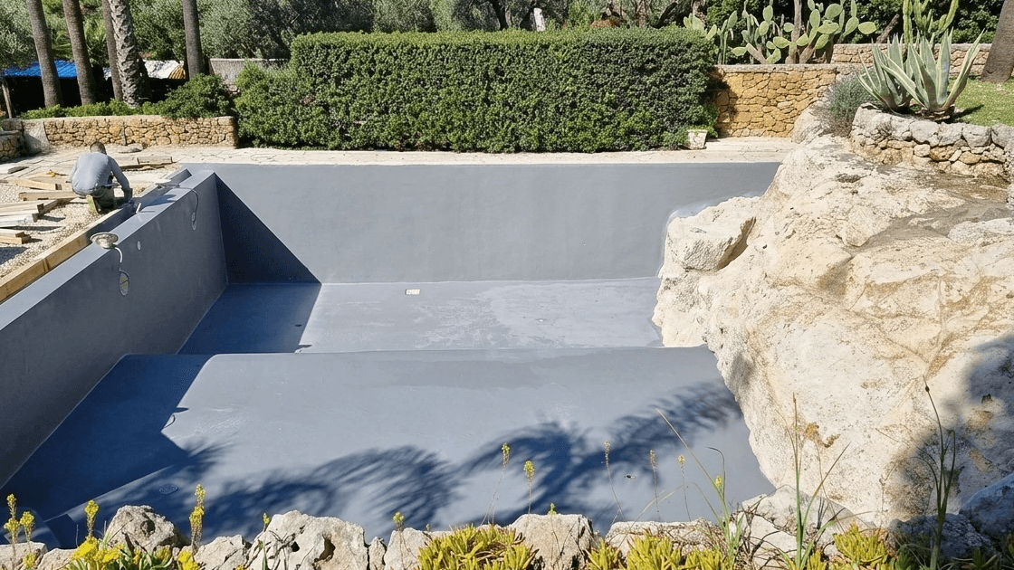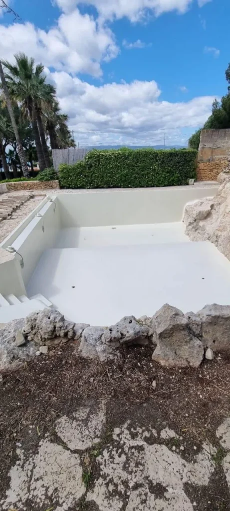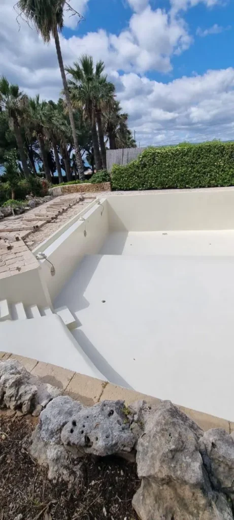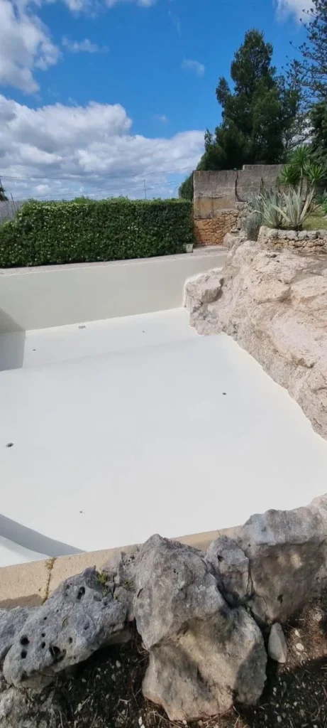 The pool has achieved total waterproofness of the tub, with a uniform beige aesthetic finish (RAL 1015) that integrates perfectly into the Sicilian landscape. The structure now enjoys long-lasting protection against degradation and infiltration, with the guarantee of reduced maintenance over time.