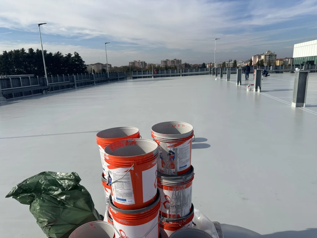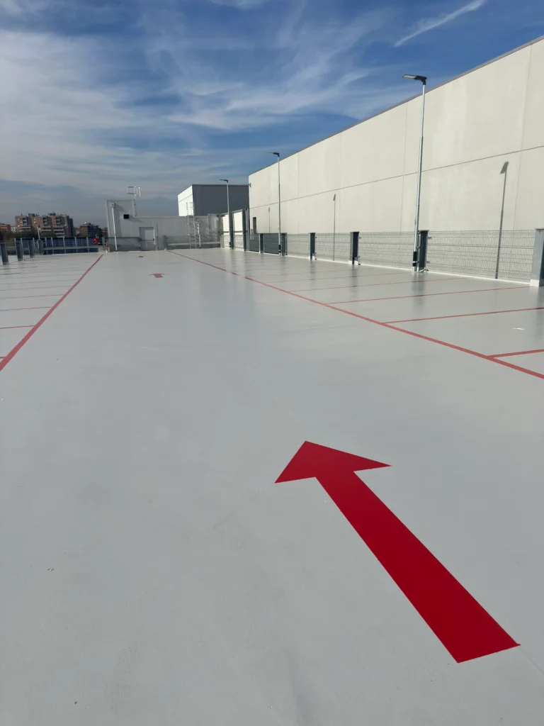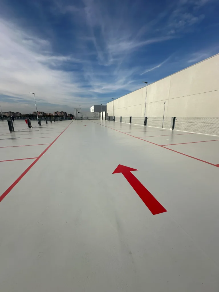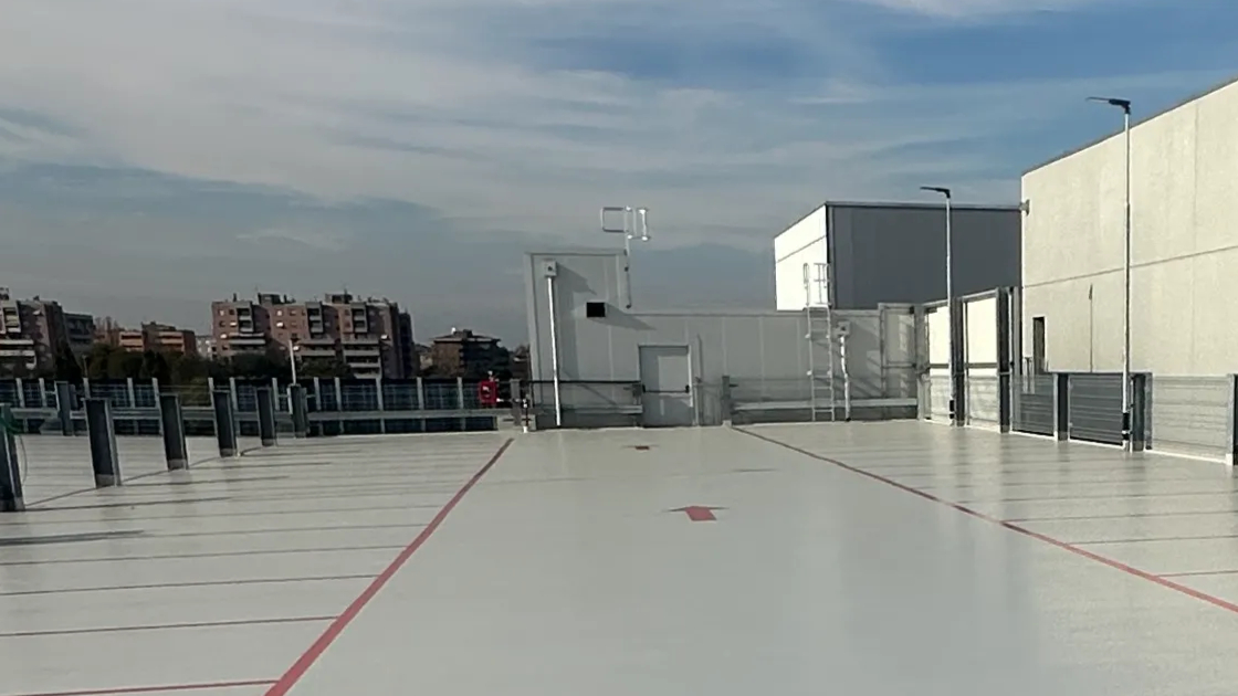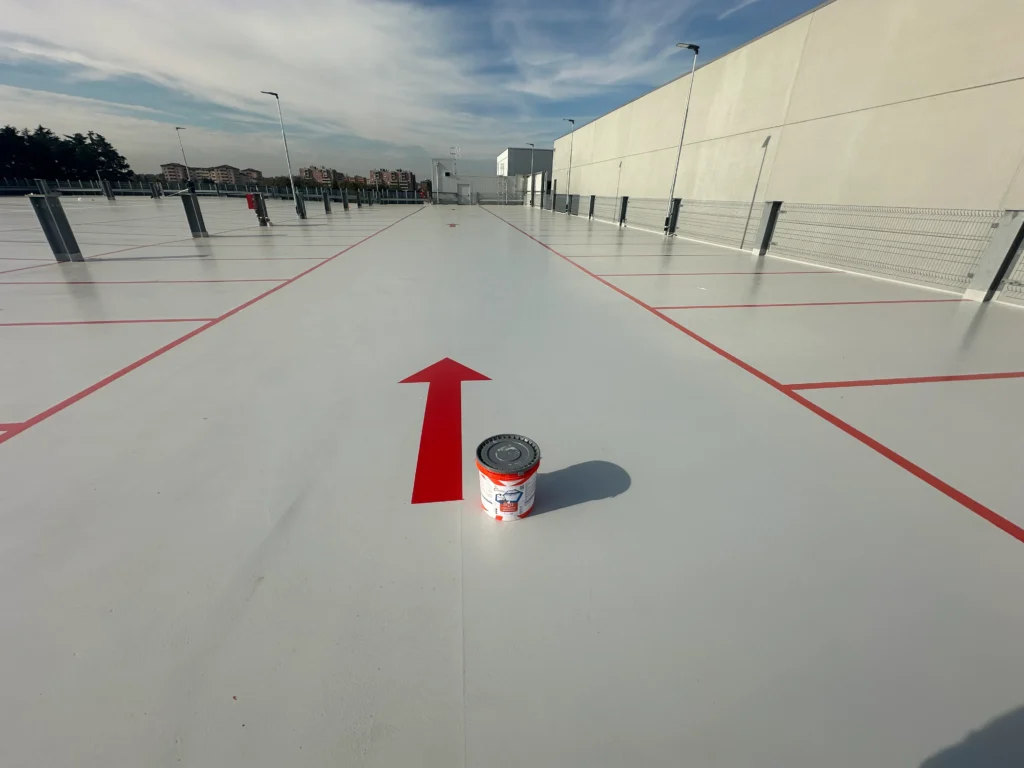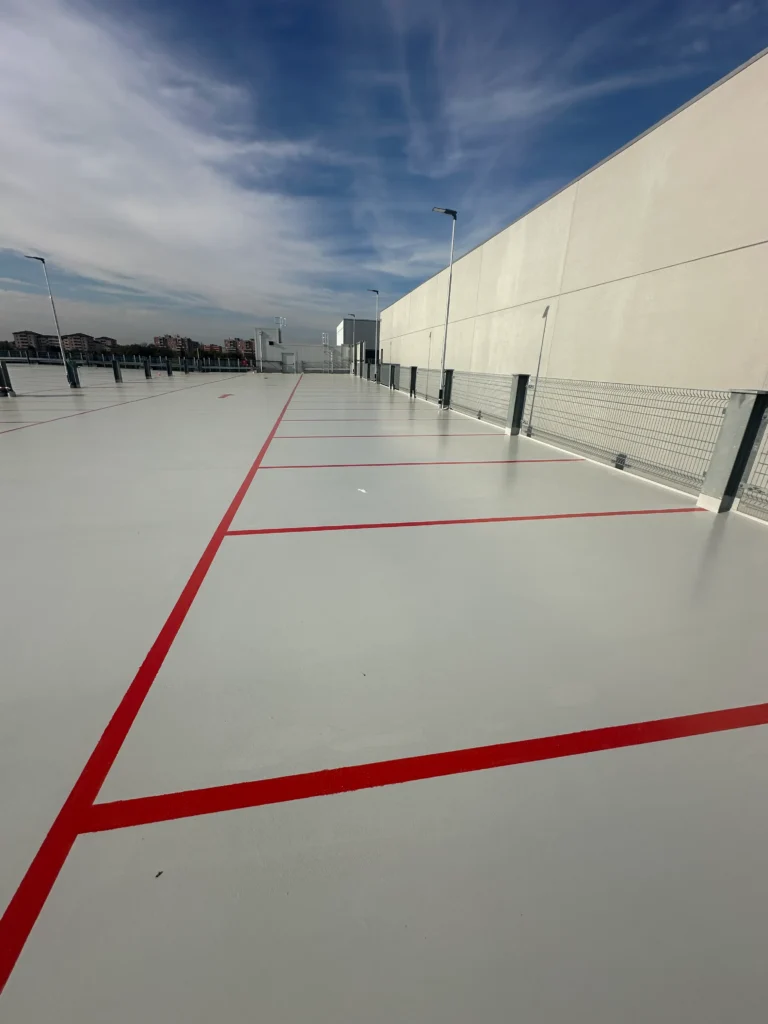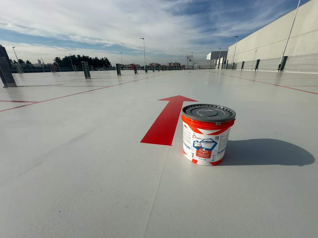 In Monza, Winkler completed 1,600 m² of waterproof and driveable industrial flooring on the ntop level of the new Thermo Fisher Scientific silo parking structure using ONE® FLOORING, the ready-to-use single-component technology certified for fire performance and very low VOC emissions.