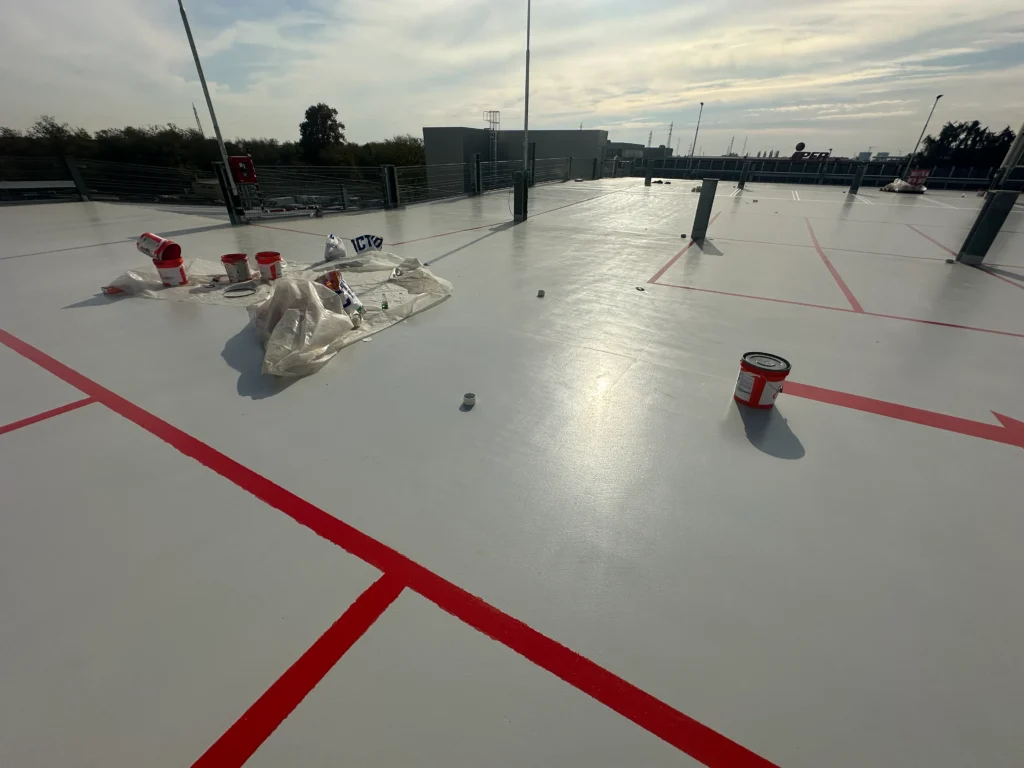 Using a single-component liquid membrane like ONE® FLOORING, which forms a seamless waterproof layer and allows quick return to service thanks to fast curing and high abrasion resistance.